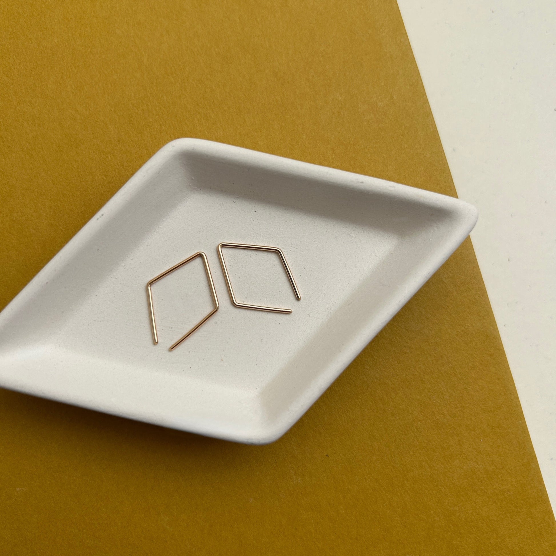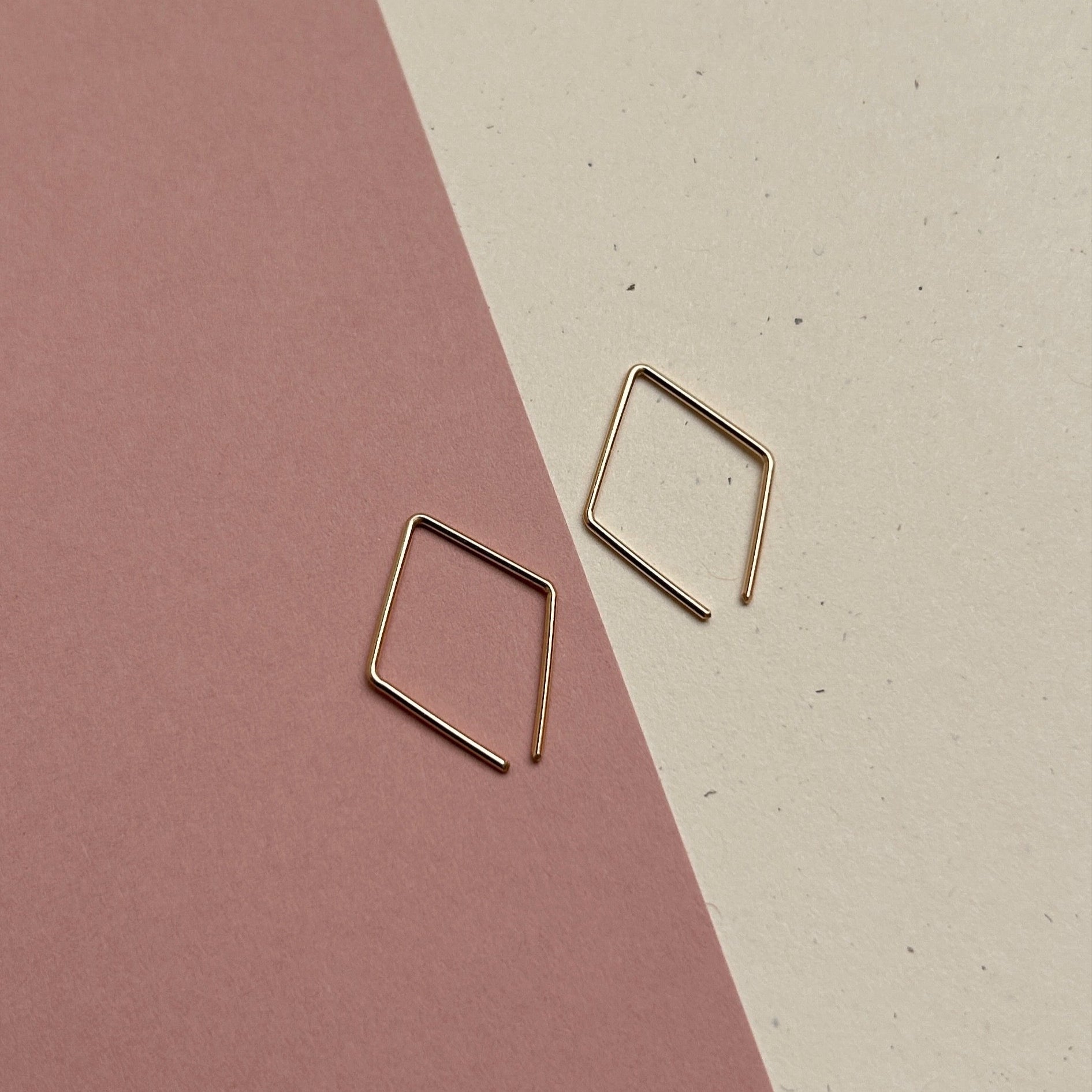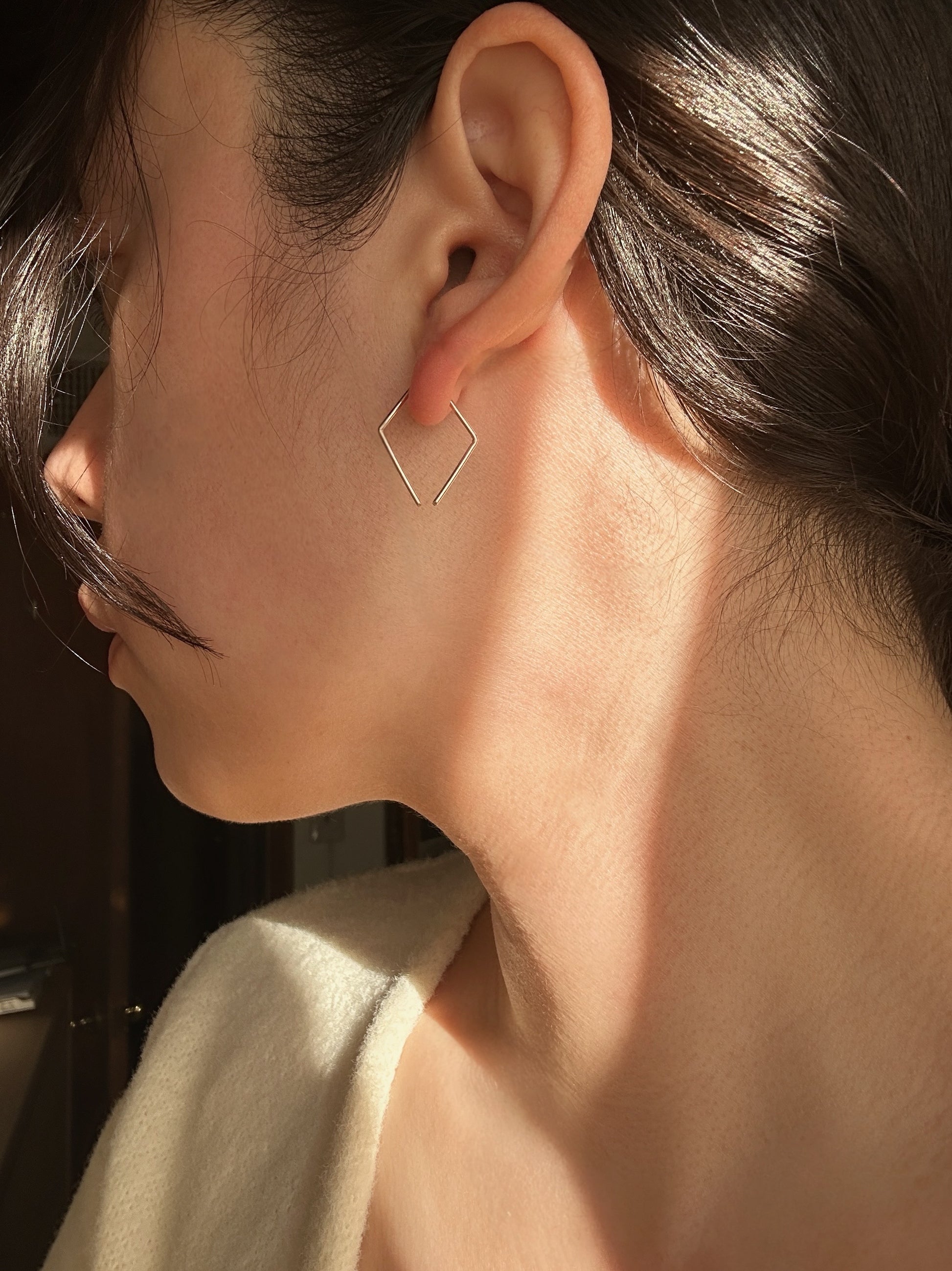 Sleek and simple everyday threaders in a hand formed diamond shape.