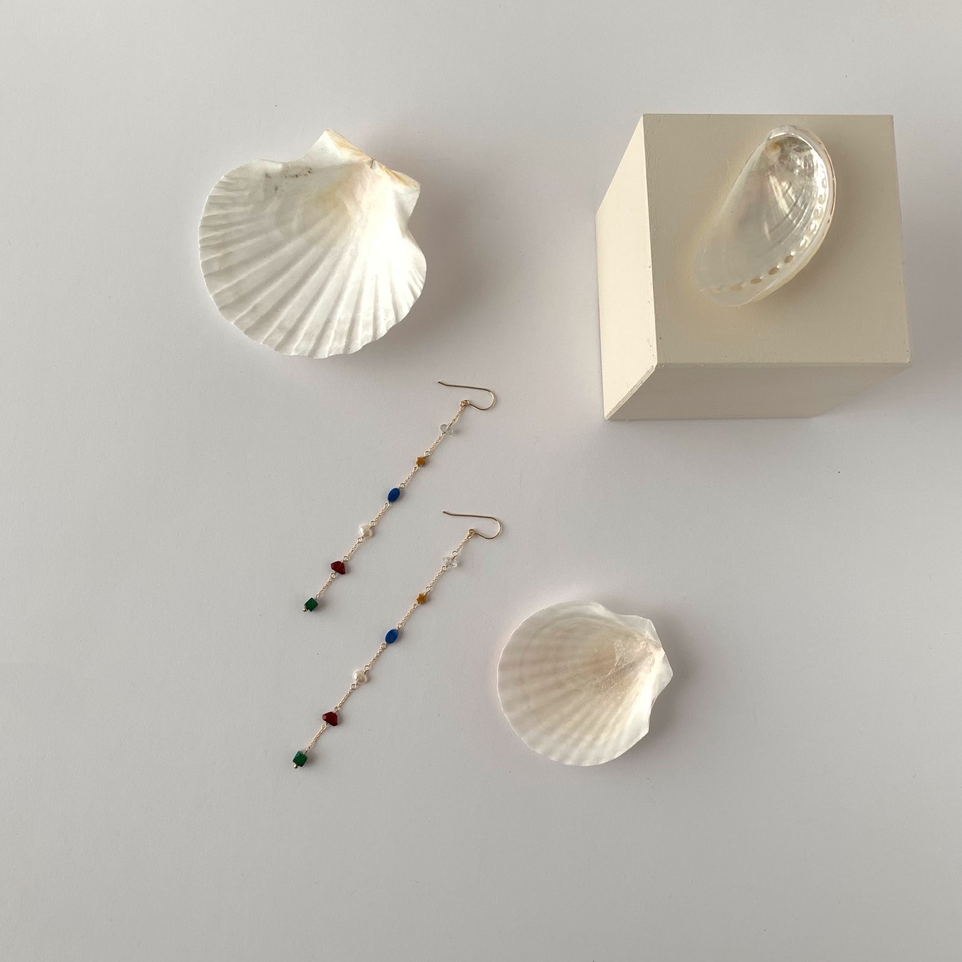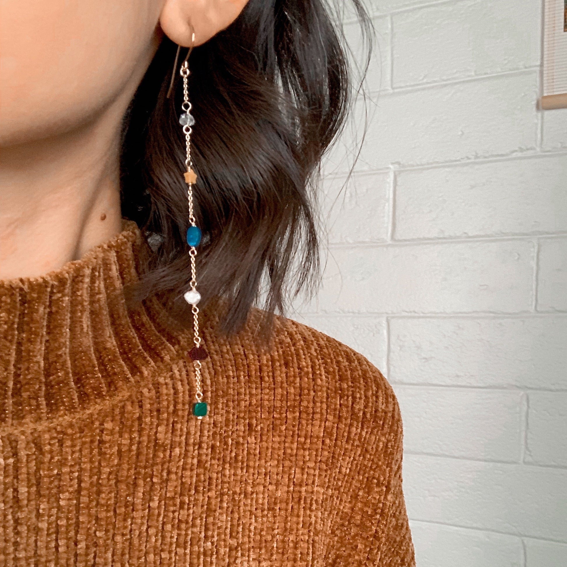 A whimsical pair of earrings sprinkled with hand cut gemstones.