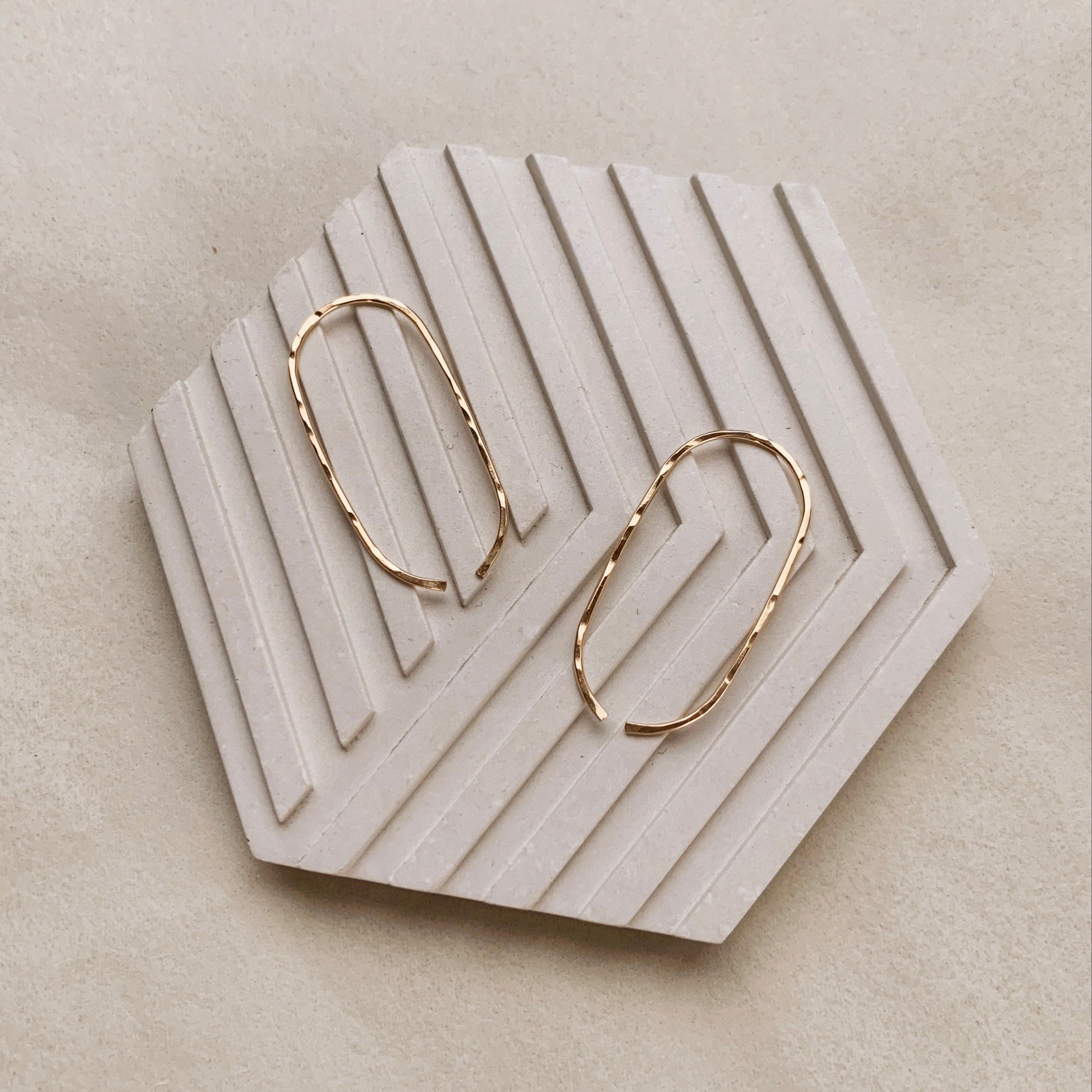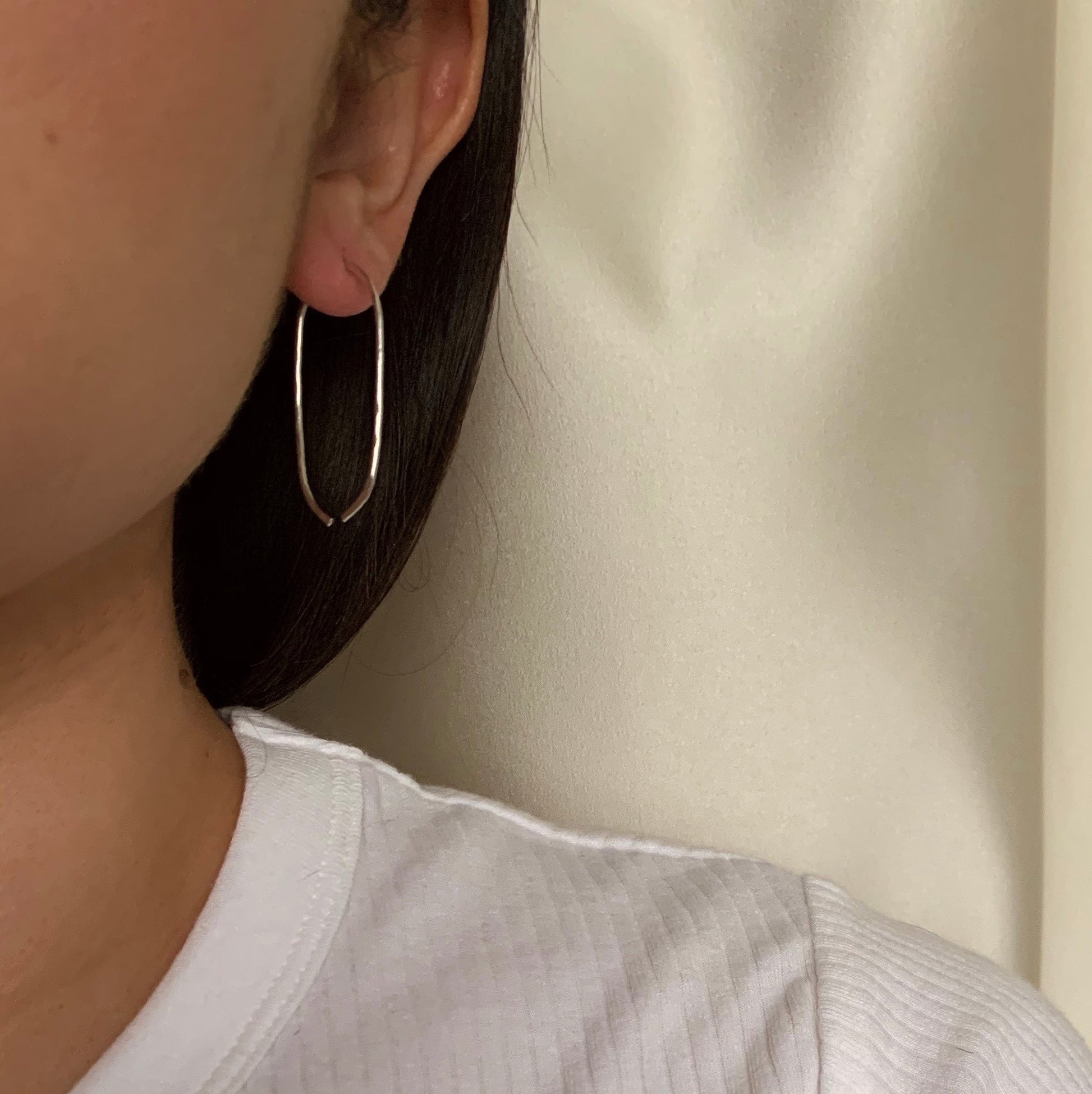 These delicate hammered hoops thread right through your ear.