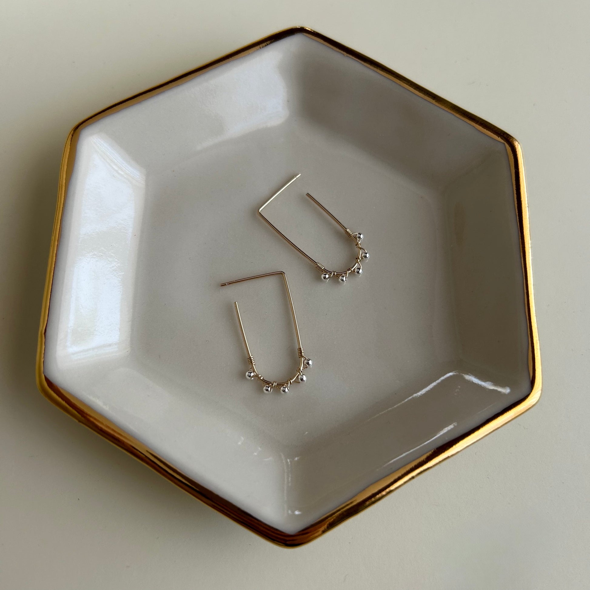 Enjoy the best of both worlds with these gold filled hook earrings featuring a sterling silver beaded embellishment.