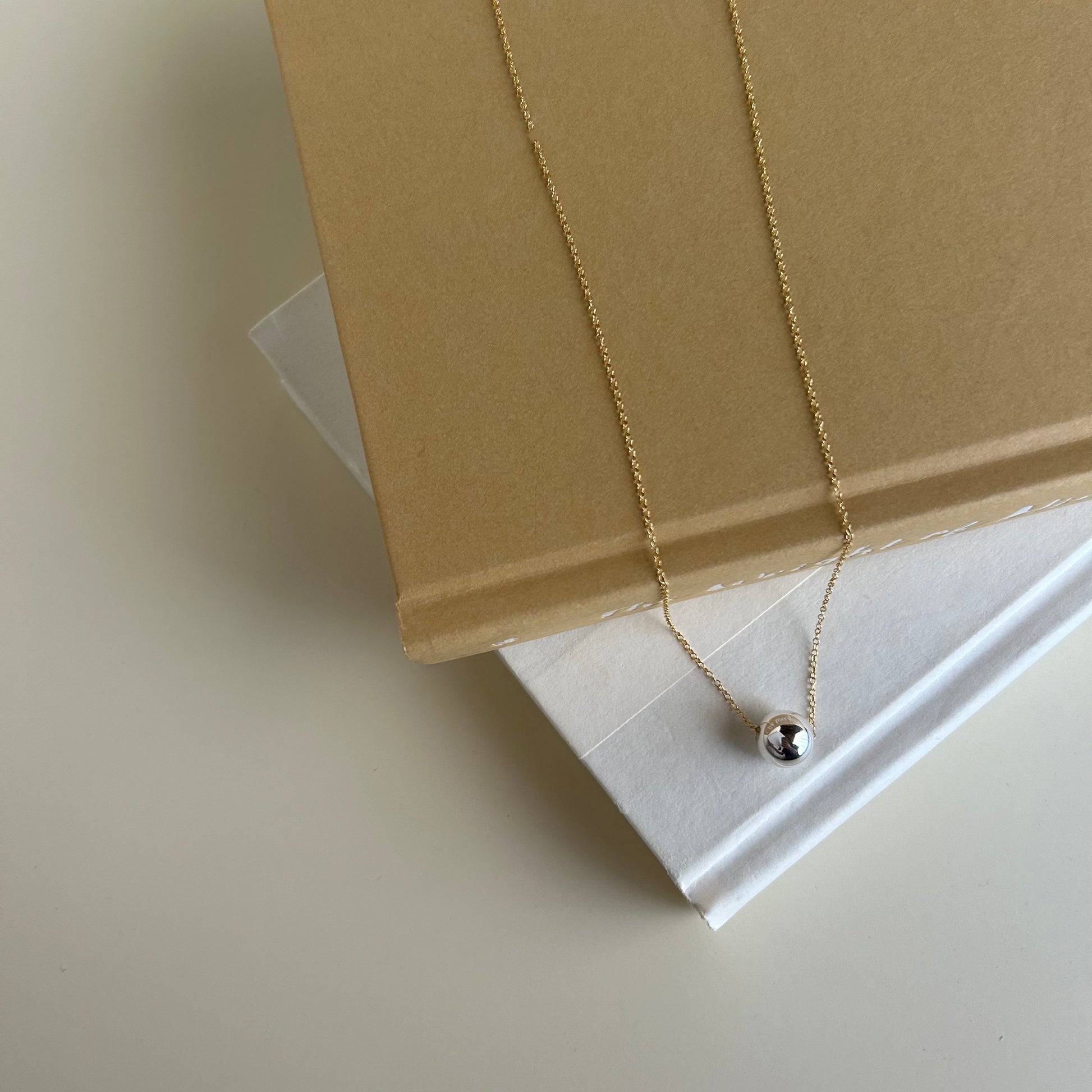 Enjoy the best of both worlds with this silver orb pendant suspended from thin gold chain.