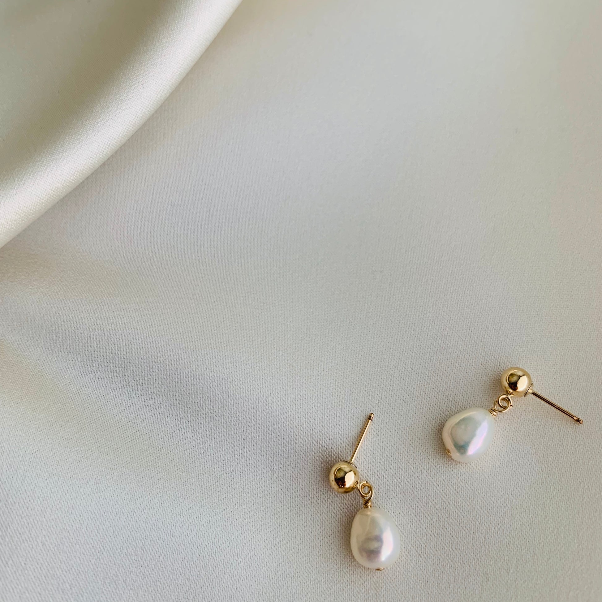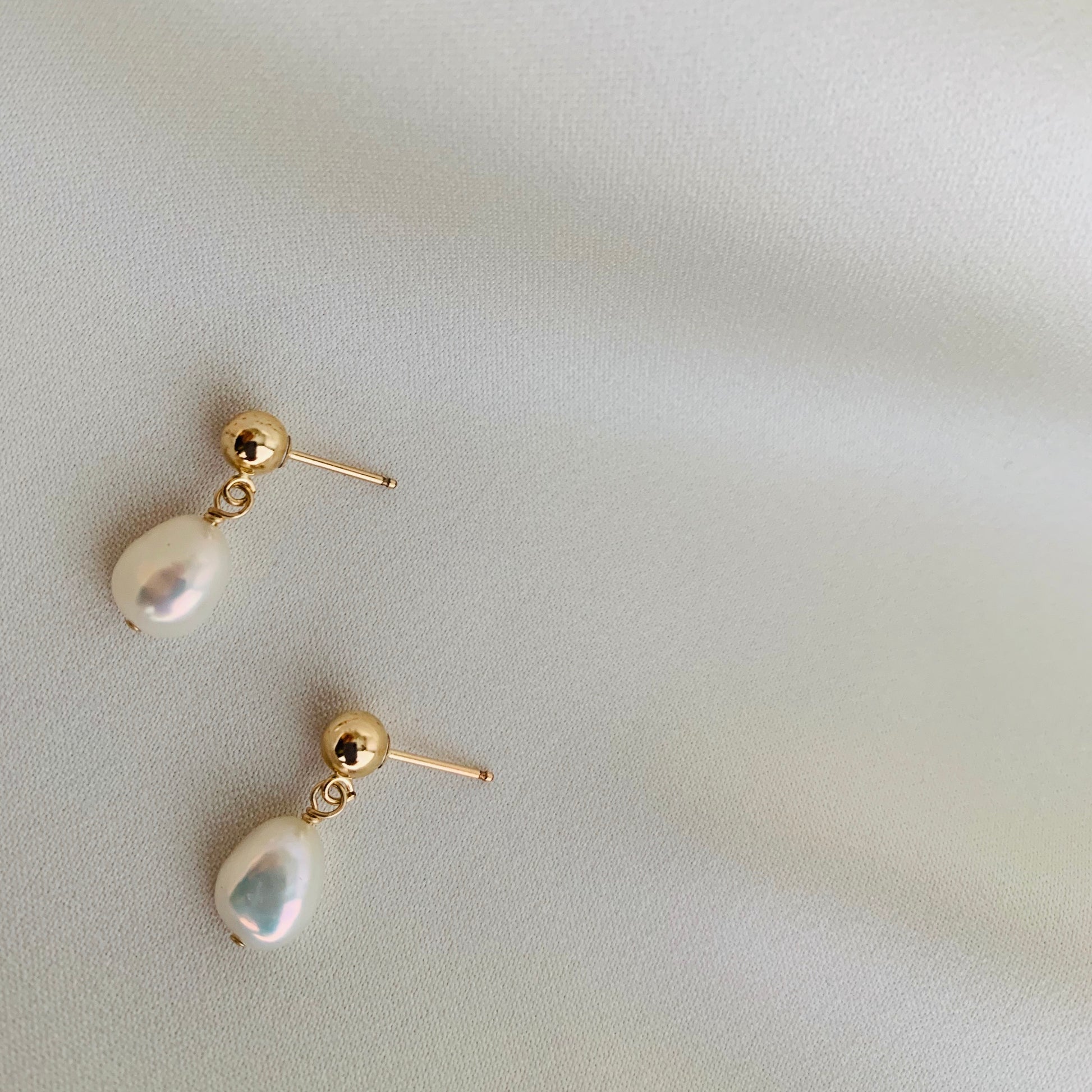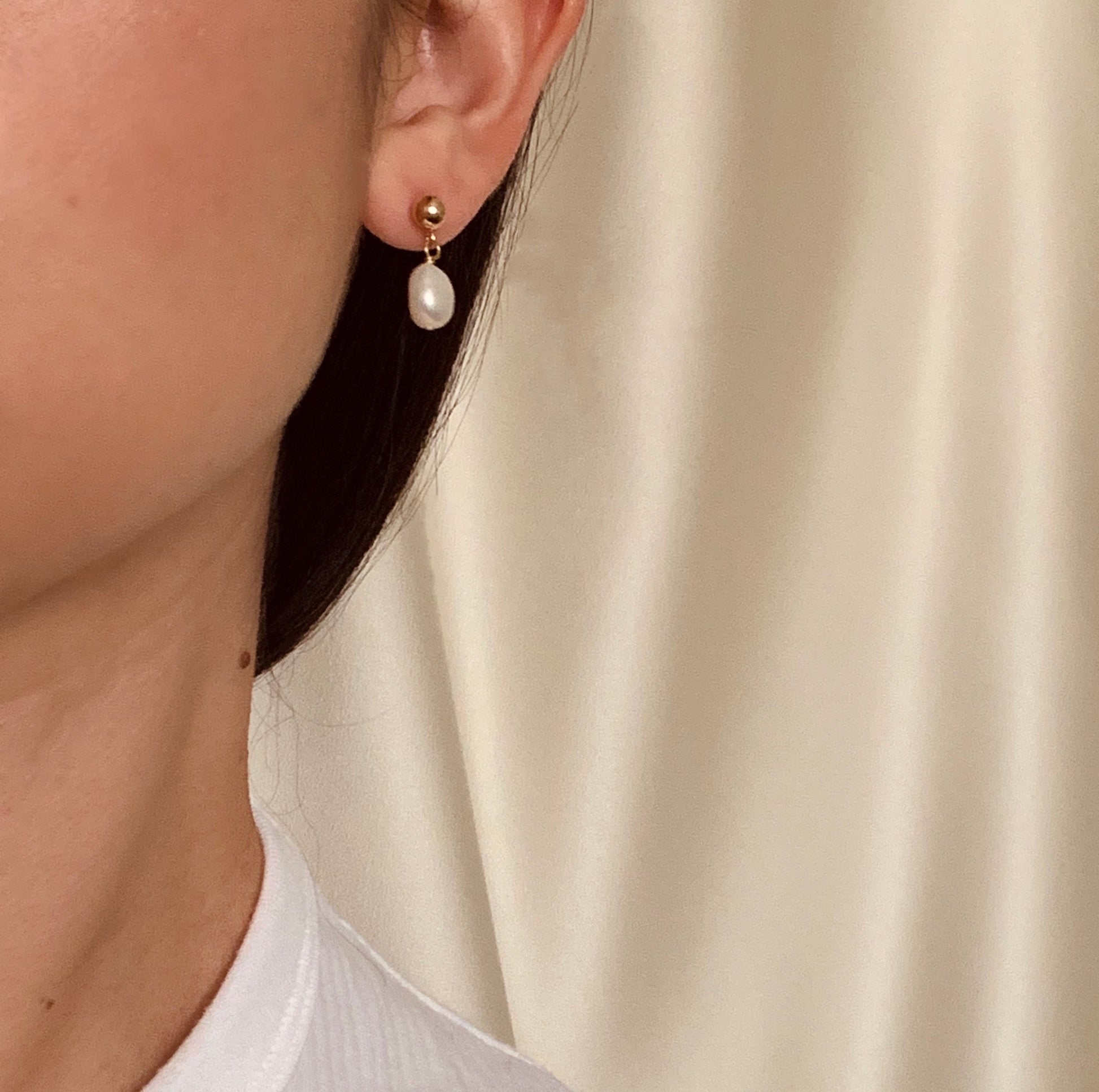 Simple freshwater pearl drop earrings.